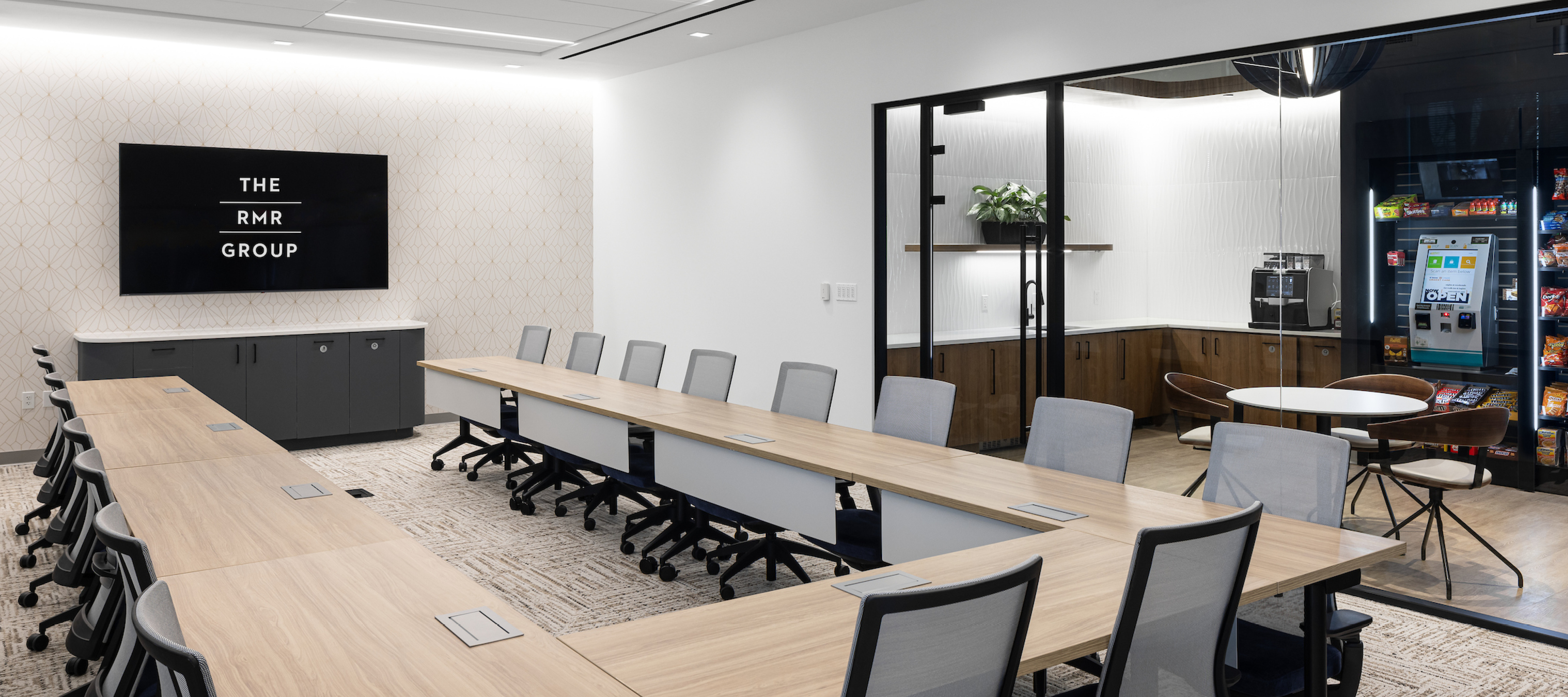 The ownership at 45610 Woodland Avenue enlisted GTM|Architects to reimagine the building’s conference center, addressing its previous limitations of being undersized, uninviting, and difficult to locate. Priorities included incorporating a new micro market and multi-functional spaces that could be used for various purposes, including but not limited to: formal conferences, casual meetings, focused individual work or relaxation.