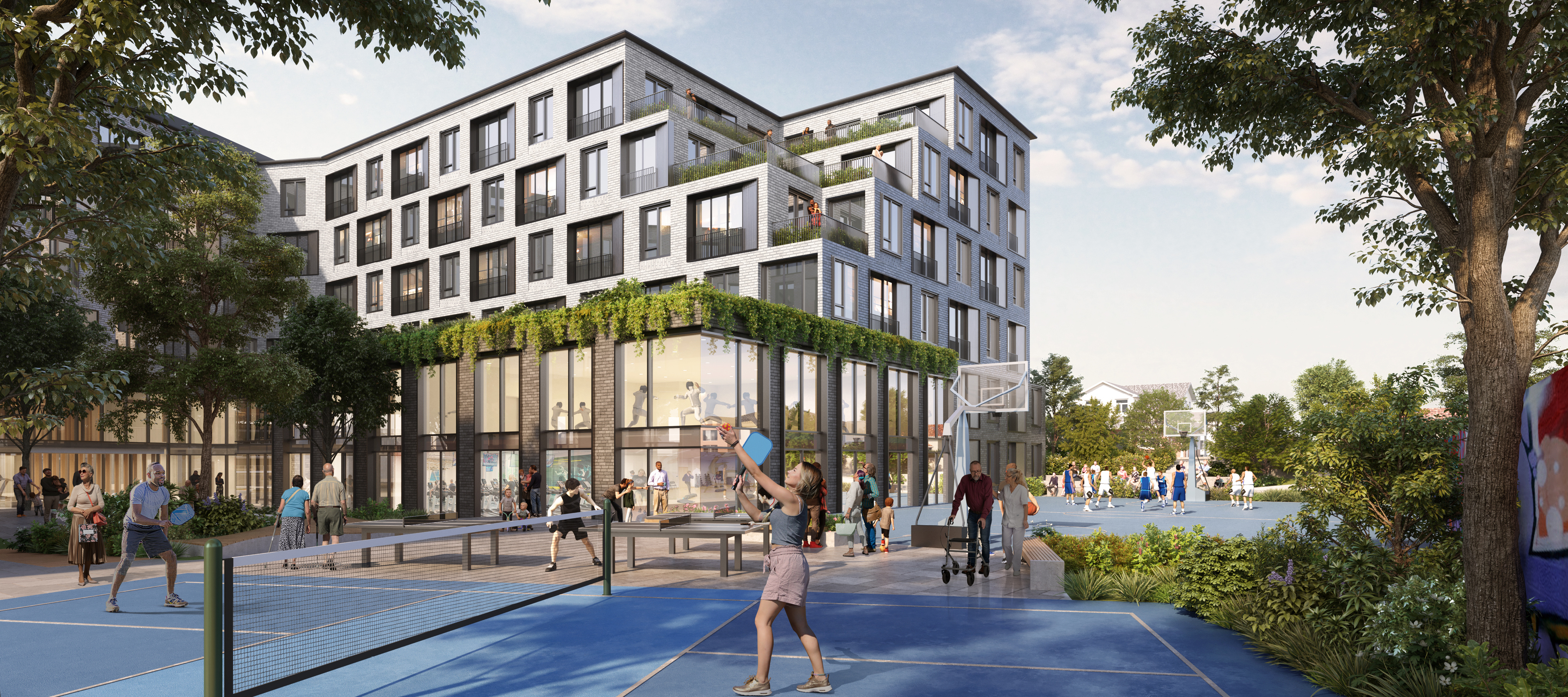 • Active outdoor recreation such as sports courts, a playground, and amphitheater