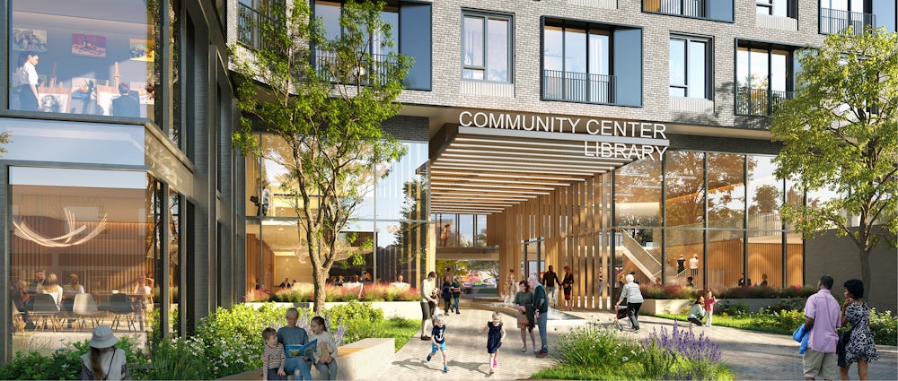 GTM Architects | DC and Perkins&Will, in collaboration with Banneker Communities, H&H Realty Group, and Blue Skye Construction and Development, DC, is one of eight teams proposing a design for the future Chevy Chase Library, Community Center, and housing. Design proposals are in the process of being reviewed by the District’s Office of the Deputy Mayor for Planning and Economic Development (DMPED) as part of their RFP process.