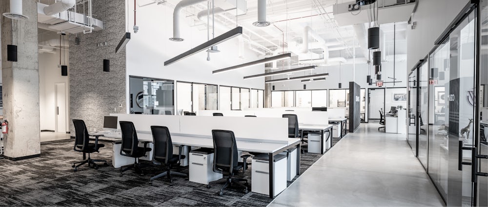 A combination of both open and closed offices were utilized with a variety of common meeting spaces, such as conference rooms, huddle rooms, team rooms and work areas with collaboration tables. The use of dHive demountable partitions allows natural light to fill the space while creating clean lines and a simplistic look. The clean, bright and open concept establishes a modern workspace for the company and complements the brand’s tech-focused business.