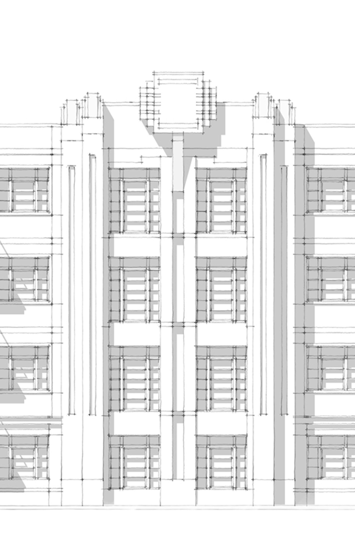 Set behind the original structure, the new apartment building draws on the industrial character and Art Deco detailing of the historic plant. Its design features loft-style windows, articulated bays and balconies, and entry detailing that echoes the scale and rhythm of the original plant. This creates a cohesive connection between the past and the present.